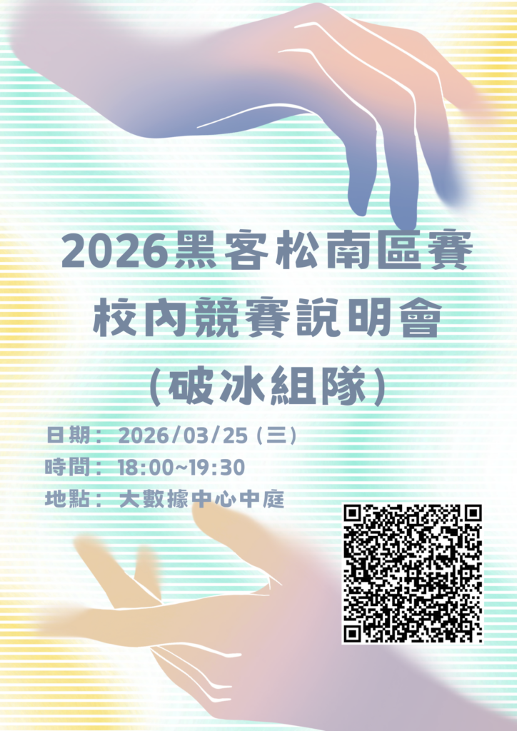 我們將舉辦「2026黑客松南區賽-校內競賽說明會(破冰組隊)」!