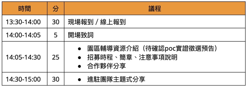 也會邀請現任園區團隊經驗分享、針對申請加入之相關說明回覆,