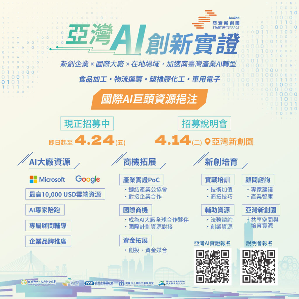 【AI新創團隊請注意!亞灣 AI 創新實證來啦!】