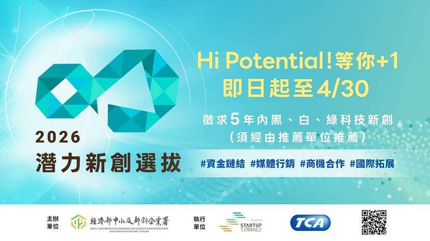 「2026 潛力新創選拔 Hi-Po Star」將遴選具創新性與成長潛力之新創團隊,入選後可獲得媒體曝光、資金媒合、專業輔導等資源,並有機會拓展更多商業合作與市場機會。自開辦以來累計吸引600多家次新創參與評選,並精選34家最具代表性的優秀新創。歷屆獲選新創累計鏈結至少50個資源單位、超過120篇媒體露出、200多場商業媒合,協助新創企業拓展國內外市場、建立策略合作夥伴與爭取商機。
